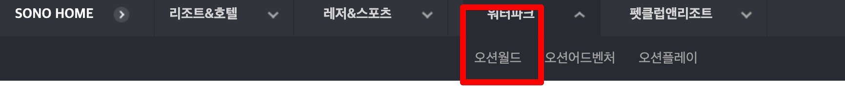 2. 상위 메뉴에서 워터파크 > 오션월드를 선택합니다.