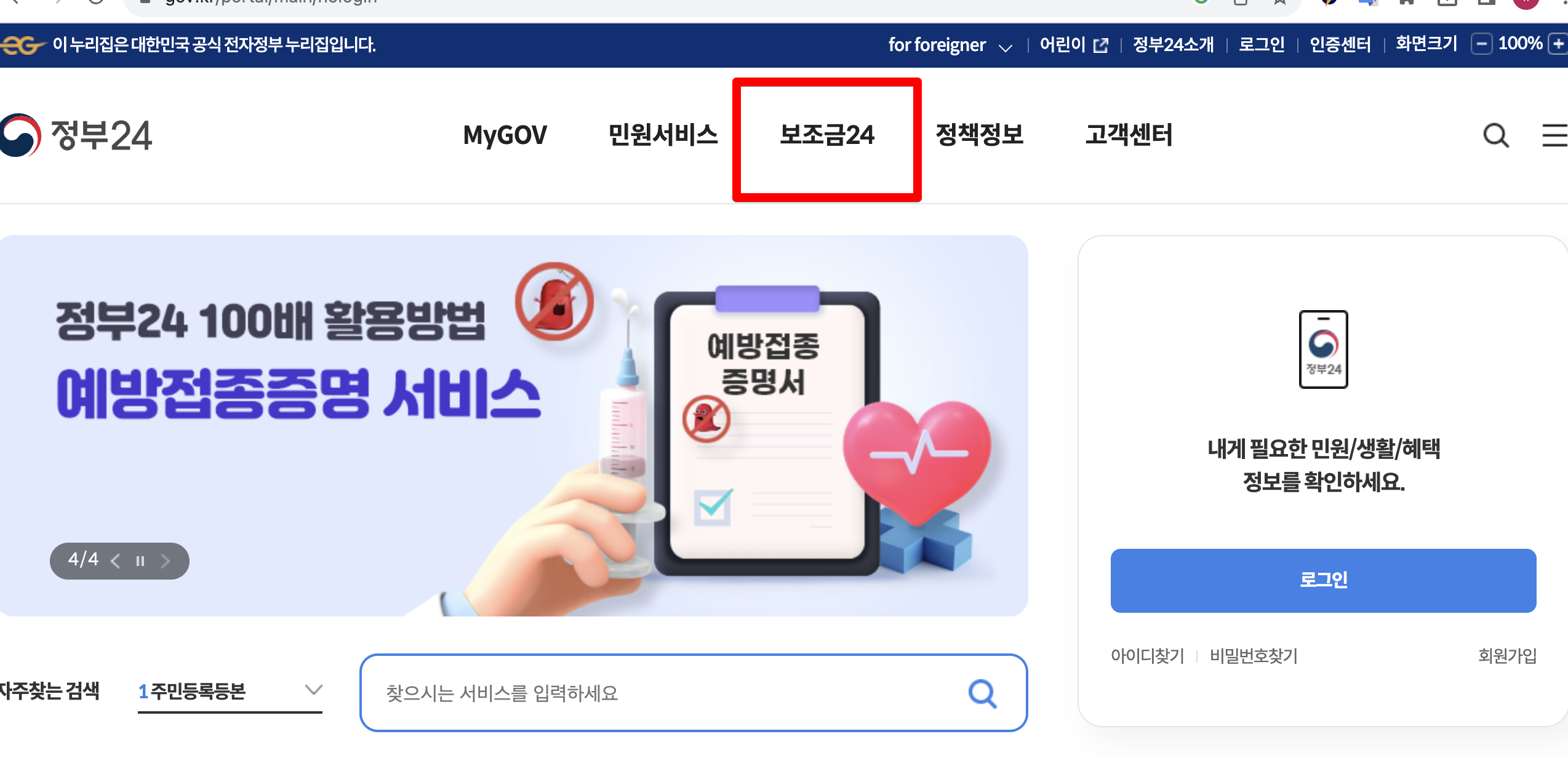 2. 보조금 24를 선택합니다.