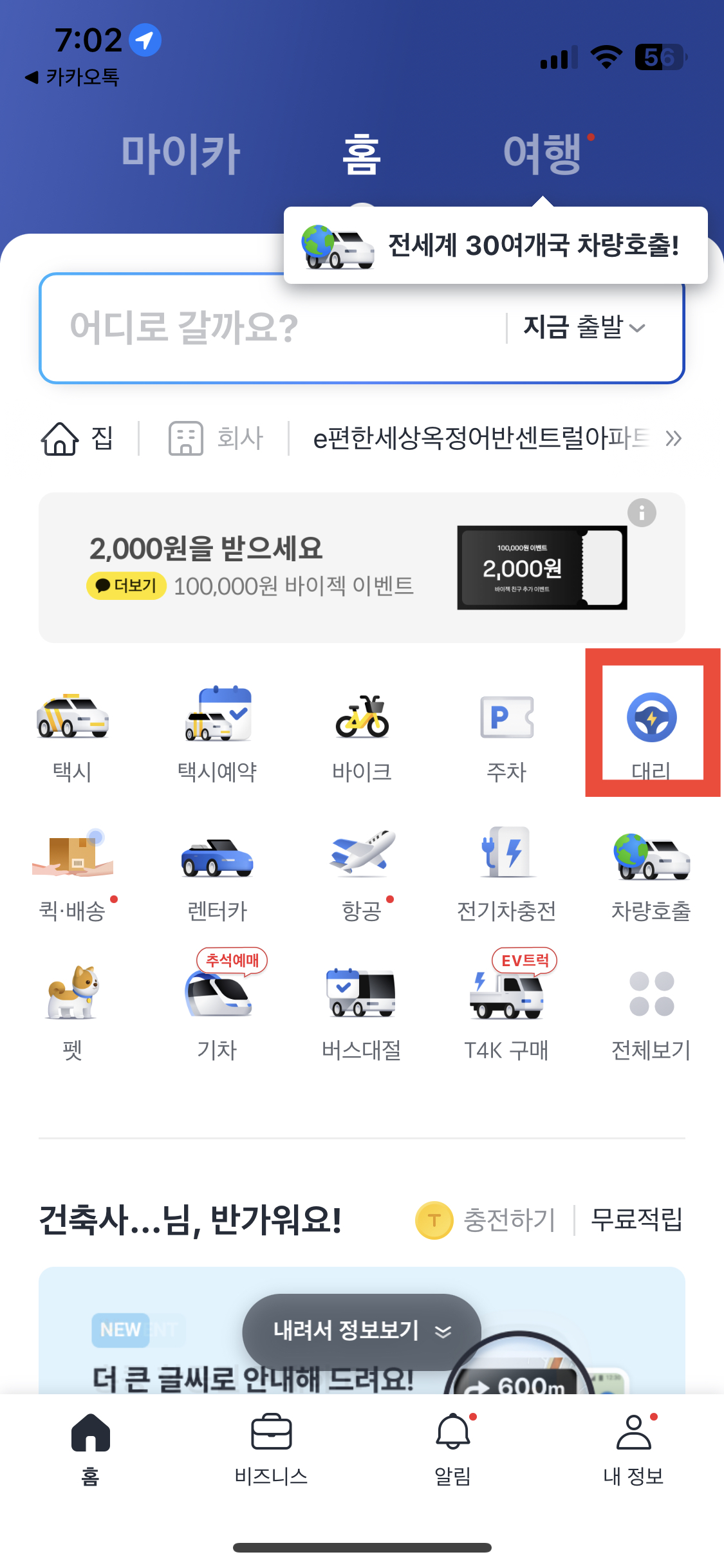 카카오 대리 운전 이용하기
