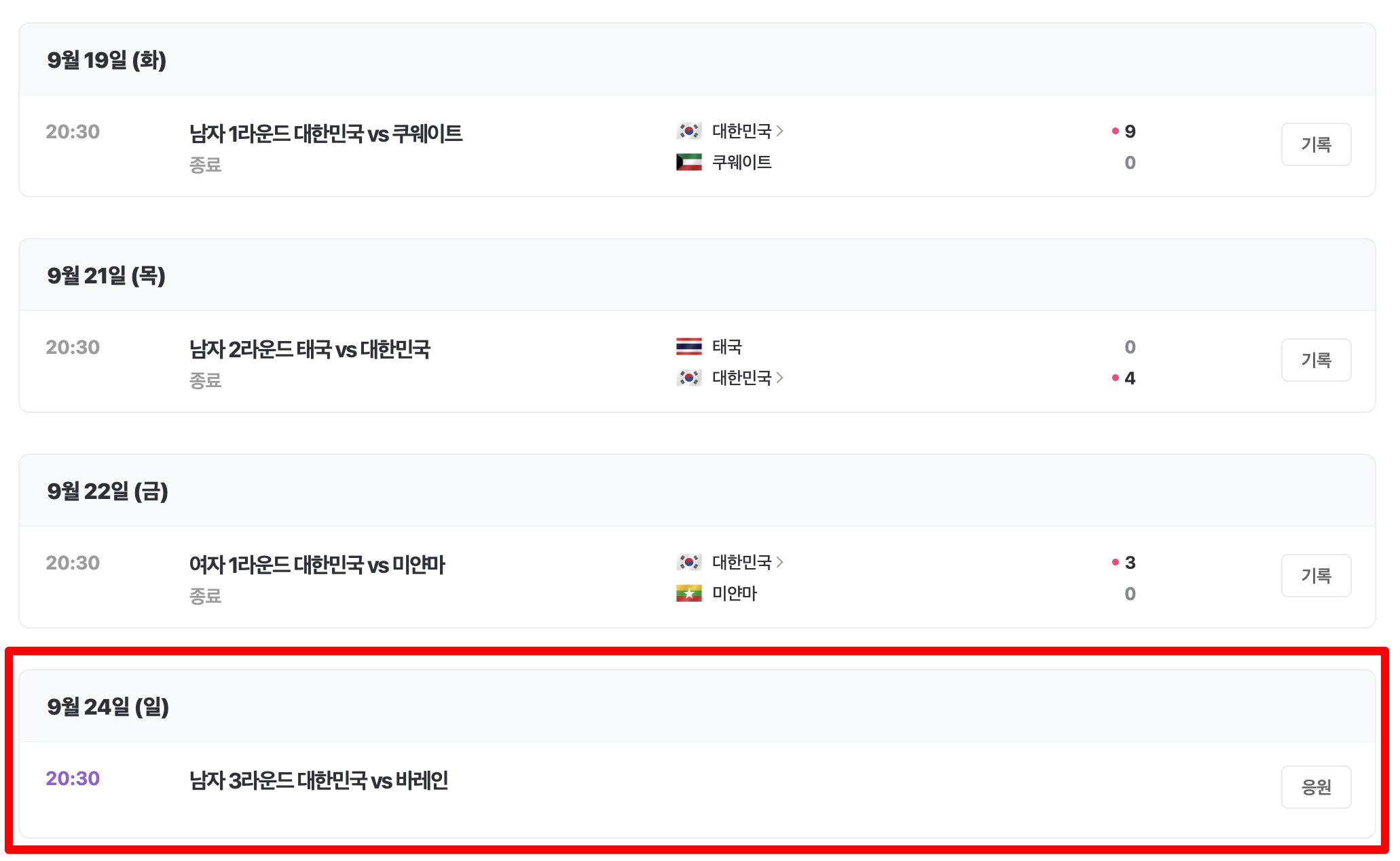 앗 그리고 9월 24일은 바레인과의 예선전이 있다는 사실 잊지 않으셨죠?