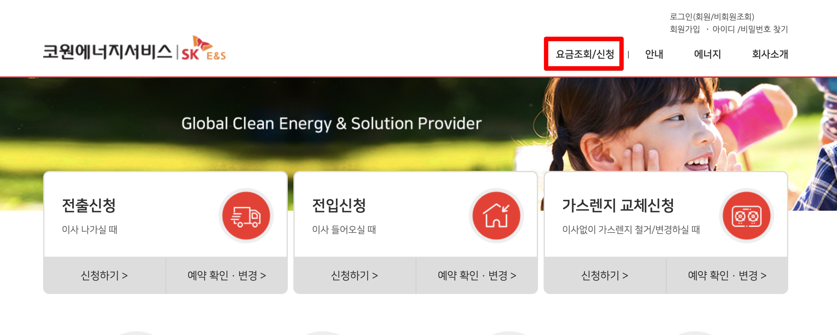 5. 해당 홈페이지에서 요금조회/신청을 누르시면 간단히 조회가 됩니다.