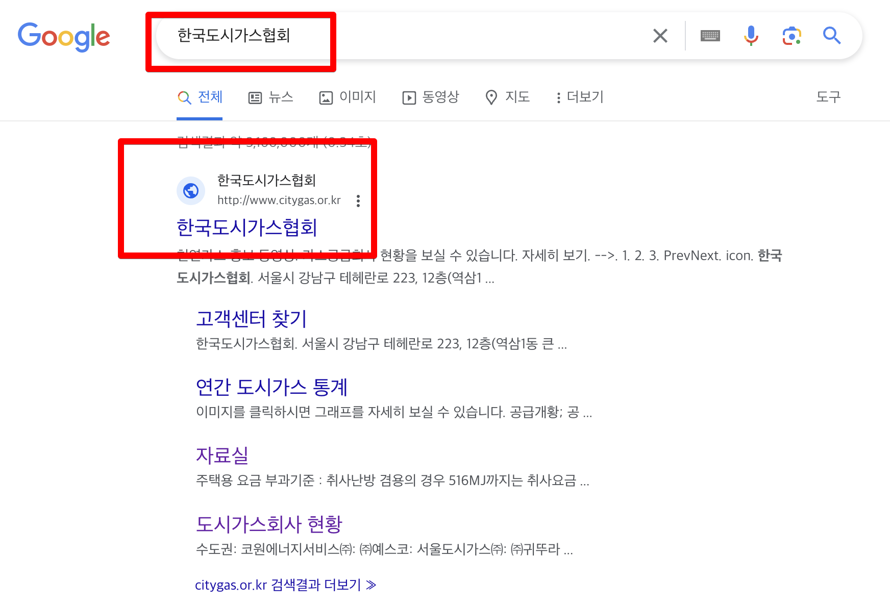 1. 구글에 '한국도시가스협회'를 검색 후 선택합니다.